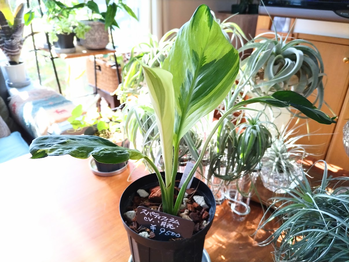 ~花が楽しみなアンスリウム シボリ~ 2024/12/07 購入日:2024/10/13 tomokun 学名:Anthurium Shibori サトイモ科 ベニウチワ属 (植物分類表 28b1.2_4) 原産地:熱帯アメリカ 特徴:仏炎苞(花のように見える部分)に絞り染めのような、ペンキ... -